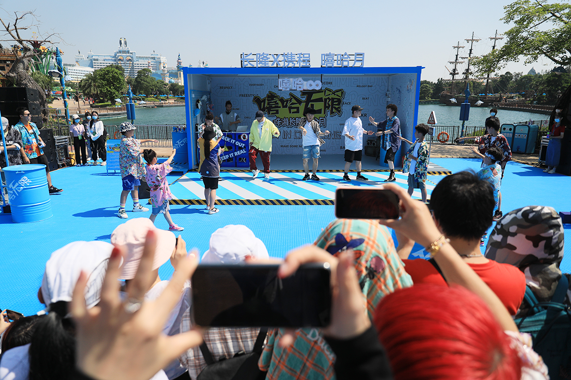 在啟動儀式上,橫琴長隆海洋王國和攜程旅遊兩大旅遊品牌邀請首位中國街舞世界冠軍「阿牙」(周任勛)傾情出演炫酷街舞,躁動全場。「阿牙」曾於2010年在法國世界大賽「JUSTE DEBOUT」比賽中和李冰冰成功拿下中國賽區Locking組的冠軍,並在法國的總決賽中更一度擊敗多國賽區冠軍,最終拿下了Locking組的世界冠軍,為中國人在街舞世界大賽中拿下第一個冠軍,其街舞團隊被稱為嶺南第一Popping天團。同時,來自廣東的新生代全能說唱Rapper團隊「萊克突擊隊」,現場帶來了長隆嘻哈月活動主題曲演出《C哈holiday》,掀起狂熱hiphop風潮。