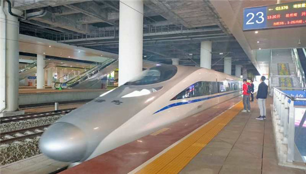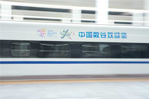 印有「爽爽貴陽、中國數谷歡迎您」的G1376次高鐵