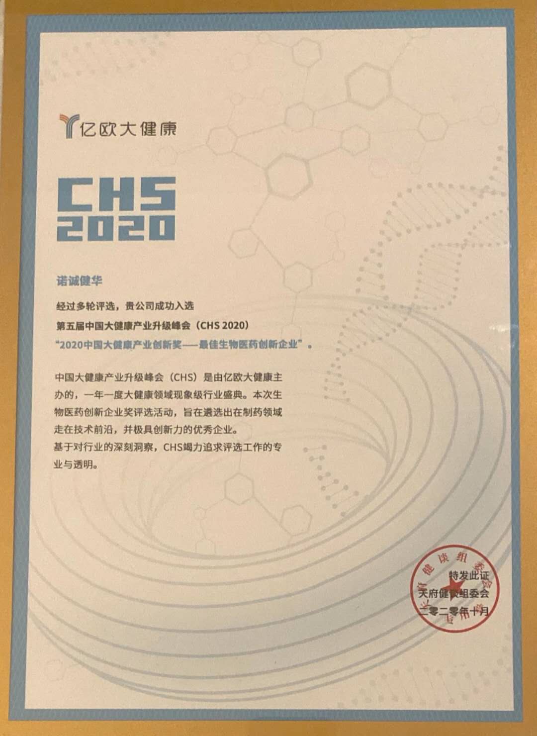 自2016年起, 中國大健康產業升級峰會已成功組織了四屆。第五屆峰會由億歐大健康主辦,指導單位是中國衛生信息與健康醫療大數據學會和四川省衛生健康委,支持單位是成都市衛生健康委。峰會匯集了政府領導、專家學者、領軍人物、醫療機構及企事業單位領導,聚焦創新藥、智慧醫療、非公醫療和健康管理四大主題,共商如何推進中國大健康產業發展。億歐大健康於2020年3月正式發起尋找國內具有創新基因與活力的大健康企業和投資機構等,獎項評選涵蓋企業創新性、產品差異化、融資能力、市場前景、產品質量、品牌意識等多個維度,最終產生評選結果。(陸春華 宋健)