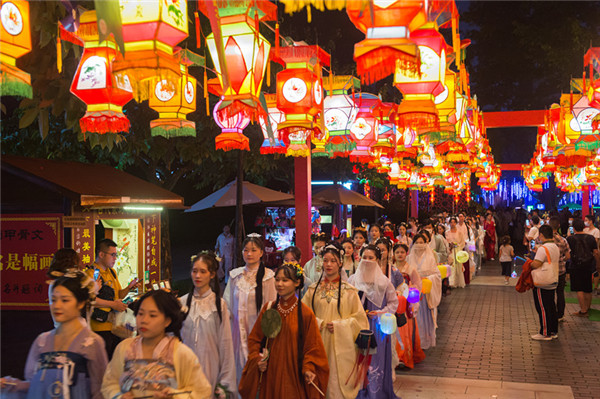 在深圳錦繡中華·中國民俗文化村,「中華百藝盛會」深受遊客讚賞。其中,妙趣橫生的相聲、快板、評書、京劇、雙簧、南北戲曲等經典國粹亮相「曲藝七天樂」,非遺舞獅團為遊客帶來了喜慶的「梅花樁醒獅」,《大漠傳奇》、《東方霓裳》等大型演藝更是一票難求,深受廣大遊客喜愛。景區內由超3000盞四川自貢非遺花燈、上千個燈謎以及街邊雜耍與美食共同打造的1500米古色古香的燈市,讓遊客體驗到了中秋節的傳統韻味。