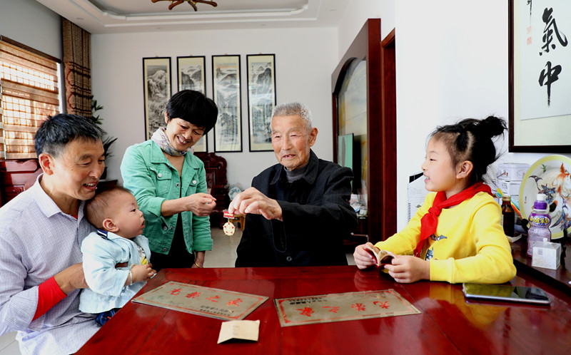 耄耋老人胡蒂如重家教揚家風成為當地居民的榜樣,戰鬥故事傳遞給一代又一代年輕人。(吳建平 吳敏)