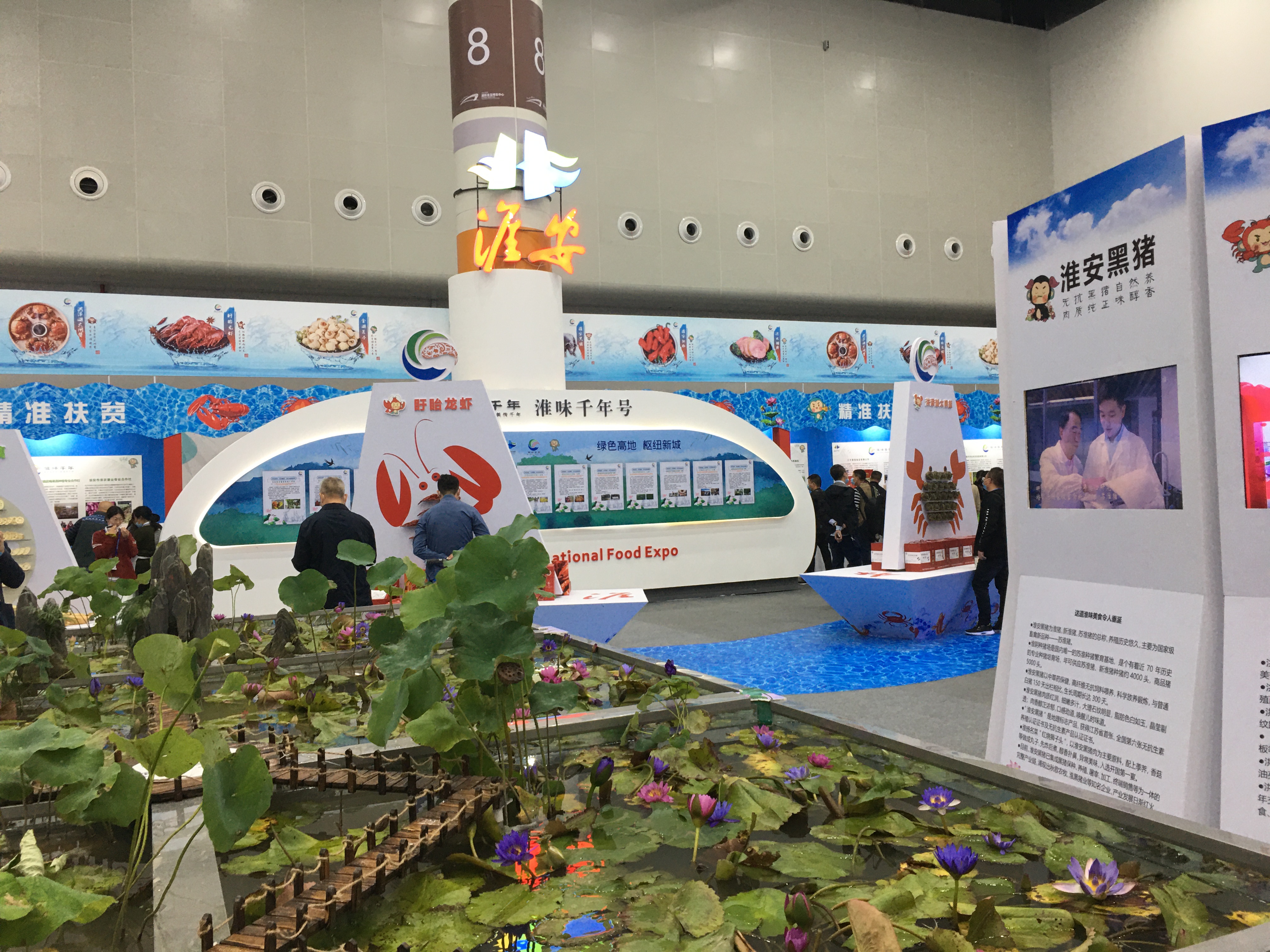 淮安是中國四大菜系之一——淮揚菜的發源地之一。在食博會「淮味千年」館內,10艘「小船」沿着「大運河」河道揚帆起航,每隻小船都有獨特的「番號」:「盱眙龍蝦」「洪澤湖大閘蟹」「淮安大米」……寓指以「淮味千年」為引領,淮安現代農業乘風破浪,揚帆遠航。