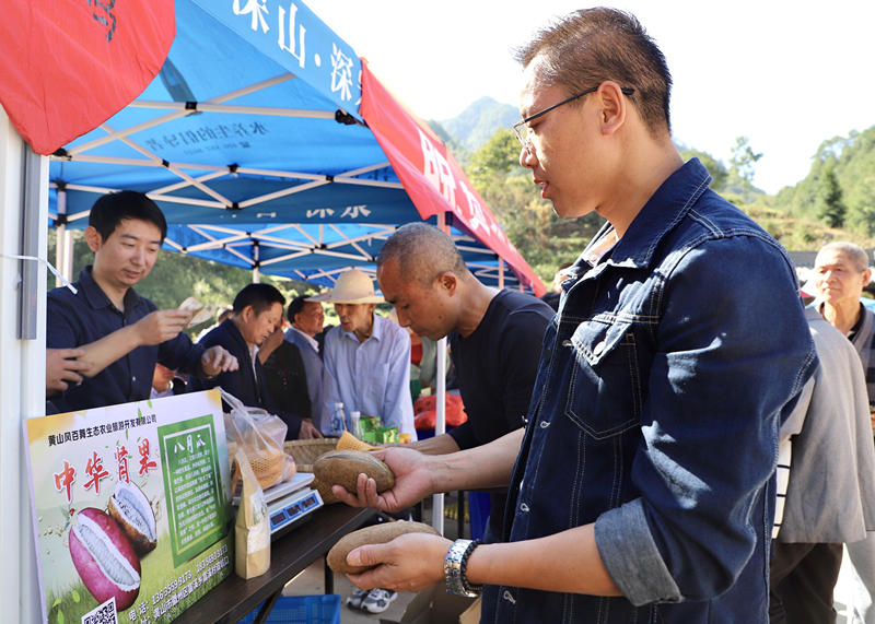 展會上,富溪鄉的八月瓜、黃山毛峰,東山的小塘藕、番薯、獼猴桃,西溪南的有機米,竦塘村的小黃牛肉……豐富的綠色農產品,吸引不少市民和遊客前來選購。企業業主也紛紛加入消費扶貧,現場採購大量扶貧產品作為福利發放員工。
