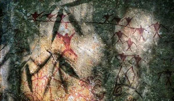 據了解,滄源崖畫群主要分布在瀾滄江流域的山崖石壁上,可辨認的圖形內容以飾羽、飾角 、飾尾 、飾耳和有羽翼的人物為主,佔全部圖像的74%;此外 ,還繪有牛、猴、熊、象、野豬等動物,樹房 、村寨 、太陽 、月亮 、弓弩 、長矛等符號,所表現的內容多為狩獵、戰爭、祭祀、巢居、遷徙、喪葬、歌舞等活動。