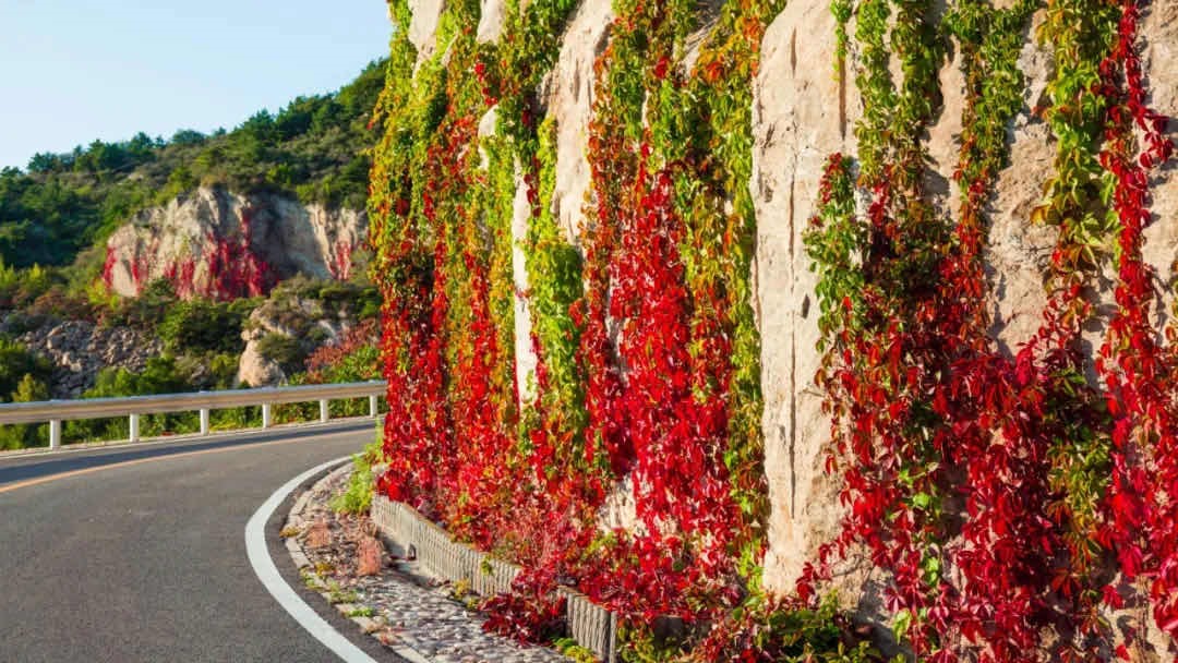 雲蒙山國家森林公園登山公路沿途紅葉已如火如荼浪漫綻放