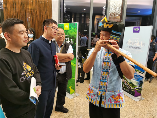 本次活動以多角度、多感官的形式充分展示了海南自由貿易港的獨特魅力。在氛圍佈置上,設置海南文化體驗區、互動區、合影區、資料展示區等五大體驗區,現場不僅能看到非物質文化遺產黎族織繡藝術品、樣式豐富的旅遊產品資料展示,聽到非物資文化遺產黎族傳統樂器「鼻簫」表演,嗅到海南沉香的古色古香,品到海南特色的「老爸茶」系列美食;還能與海南旅遊文化國際形象推廣吉祥物波波椰、身穿黎苗服飾的海南姑娘互動學習海南話,多感官近距離接觸不一樣的海南。另外,三亞國際免稅城、亞特蘭蒂斯酒店、海口觀瀾湖酒店、長影100主題樂園4家海南旅遊企業派專門的銷售人員在現場進行解疑答惑和旅遊諮詢洽談。