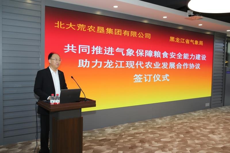 潘進軍指出,北大荒集團是我國重要商品糧基地,具備超過400億斤糧食綜合生產能力和商品糧保障能力,為保障國家糧食安全作出重大貢獻。近年來,省氣象局與北大荒集團通過不斷深化合作,建設3部多普勒天氣雷達,對北大荒集團78個自動氣象站進行升級改造,並共享氣象信息。今後,希望雙方充分發揮各自優勢力量,拓寬合作領域,深化合作項目,共同謀劃「十四五」北大荒集團現代農業氣象保障能力建設,進一步為北大荒集團農業生產和產業發展提供高質量的氣象服務,為「中國飯碗」裝更多的中國糧作出更大貢獻。