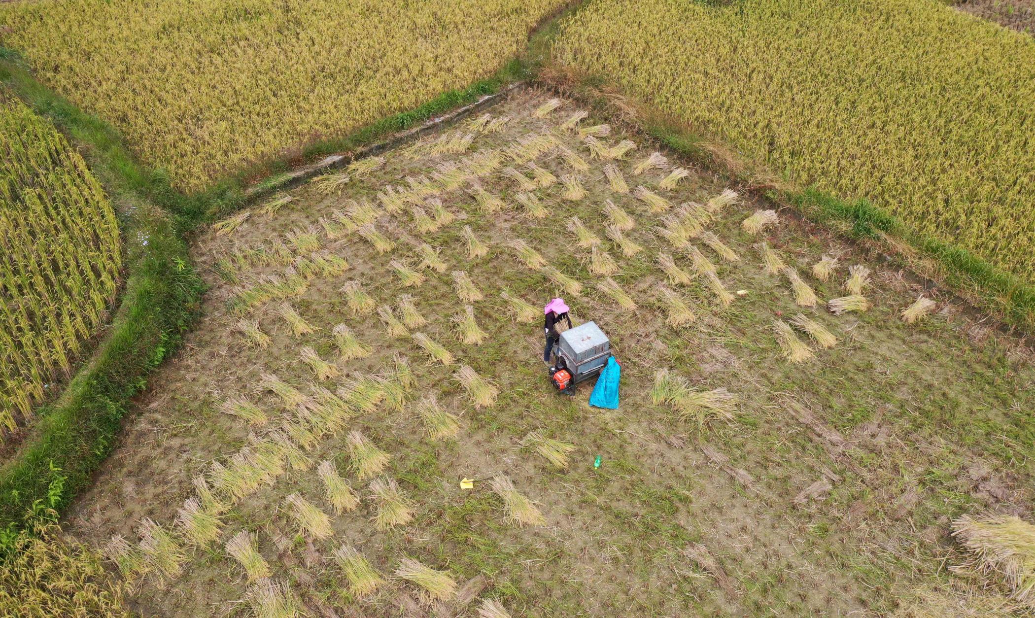 金秋時節,廣西柳州市三江侗族自治縣各鄉鎮種植的再生稻陸續迎來豐收季,侗鄉群眾搶抓晴好天氣搶收稻穀,該縣供聯投資有限公司還派人到村保價收購生稻穀,確保顆粒歸倉。