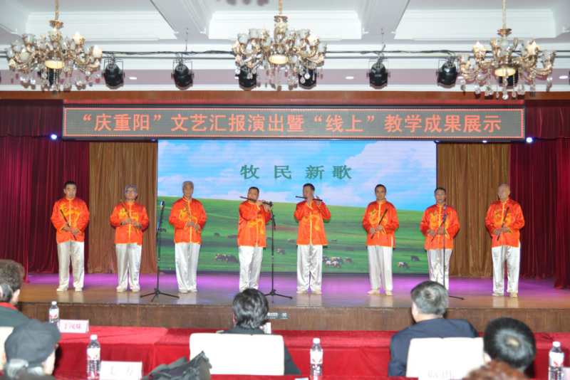 在重陽節來臨之際,哈爾濱市老年人大學本着「提升老年學員文化藝術創作能力、豐富老年學員學習生活和展示學校教學成果」的工作宗旨,於10月23日9時30分在十二樓多功能廳舉辦了「慶重陽」文藝匯報演出暨「線上」教學成果展示活動。哈爾濱市政府副市長陳遠飛,市衛健委主任丁鳳姝,市教育局副局長趙文祥,市教育局繼續教育處鄧向偉處長出席本次活動。