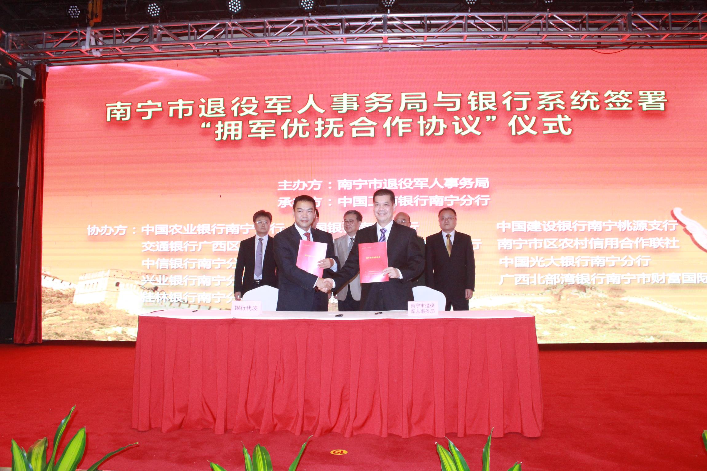 2019年9月,南寧市退役軍人事務局與銀行系統舉行「擁軍優撫合作協議」簽署儀式