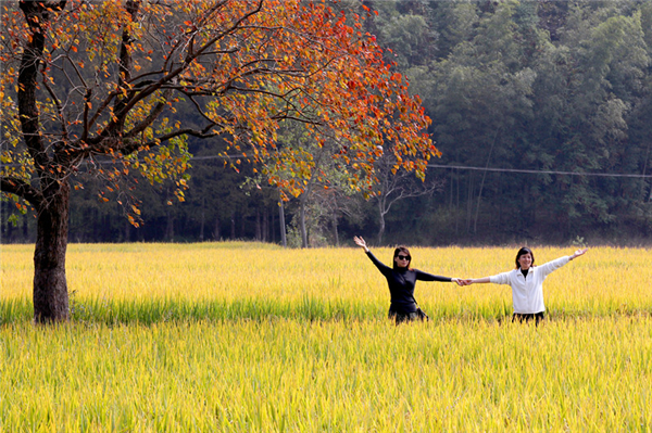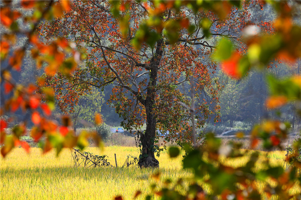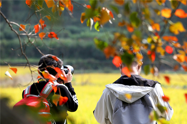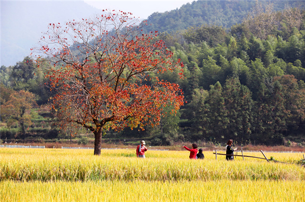 楓葉微紅,碧雲秋色。連日來,受冷空氣的影響,黟縣塔川古村落秋意漸入佳境。10月22日,塔川粉牆黛瓦的徽派古民居掩映在色彩斑斕的秋色之中,遊客與周圍絢爛秋色交相輝映,在黟縣塔川的田野裏暢享秋日時光。每年的11月是看秋色的最佳時間,此時漫山遍野的烏桕樹呈現出綠、黃、紅的斑斕色彩,層林染盡,疊翠流金,構成了徽州的秋日樂章。