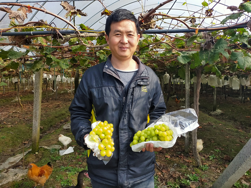 金秋送爽,瓜果飄香。10月22日,時令雖已過寒露,但走進安徽黄山市休寧縣萬安鎮欣徽勤園家庭農場葡萄基地,只見一串串晶瑩剔透的葡萄掛滿枝頭,惹人喜愛。據農場負責人張衛星介紹,掛果的葡萄品種名叫“陽光玫瑰”,是該農場的特色品種之一,因掛果期長、甘甜可口、耐儲存等特點深受市場歡迎。