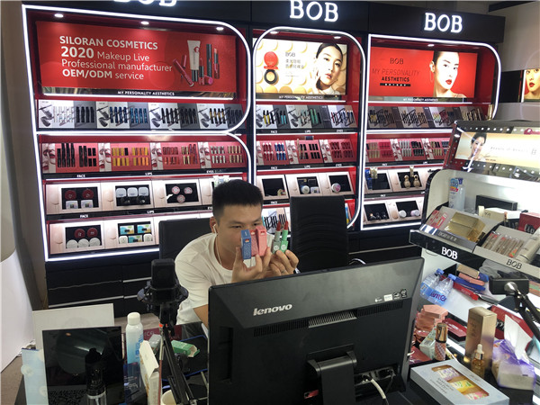 商家在展會上直播帶貨