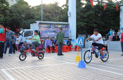 講課結束後,工作人員現場組織了小「考核」。孩子們騎上自行車,按照擺好的交通標誌,在廣場上演了一場「騎行競技」。一系列活動下來,略感疲憊的小朋友邊休息邊觀看交通安全警示片,並將所學知識與片中場景對應。「現在我終於明白為什麼要遠離大汽車了,因為盲區真的很危險。」小朋友們認真的說道。