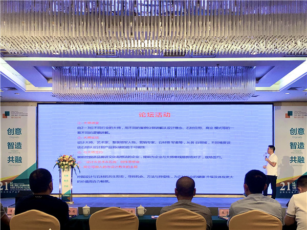 發佈會上,水頭石博會暨石設計周總幹事潘鵬章首先從時間、展位、活動、宣傳等四大維度向大家介紹了今年「大不一樣」的展會規劃。隨着數字時代的到來,本屆展會更與時俱進,首設「大師設計作品特展」、跨界(直播)展區、智能智造展區、APP線上展區等多個模塊,為石材企業走向B端、C端搭建橋樑;同時延請設計名師、行業大咖,為第21屆水頭石博會助力,豐富的展會活動,涵蓋多個主題,將為四天的展會注入別樣生機。