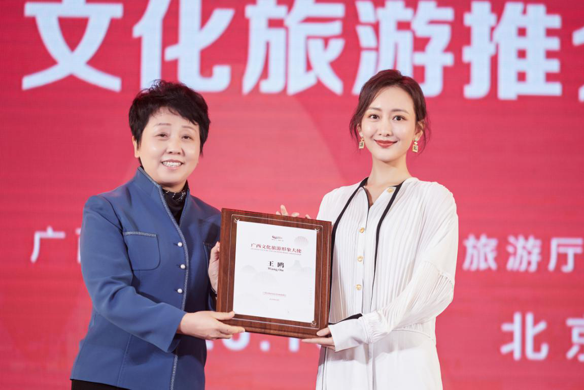近日,2020「山水暖你 壯鄉等你——冬遊廣西」推介活動在北京舉行。廣西首次推出文化旅遊形象大使,知名演員王鷗正式出任廣西文化旅遊形象大使,為「秀甲天下 壯美廣西」傾力代言。廣西壯族自治區黨委常委、宣傳部部長范曉莉為王鷗頒發廣西文化旅遊形象大使證書。
