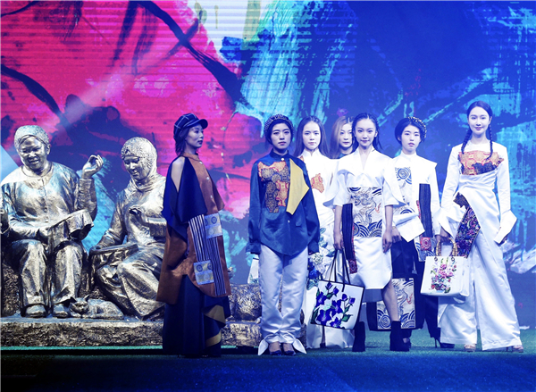 公益秀由第69屆世界小姐中國代表總冠軍李珮姍,中國首席名模毛楚玉,中國女子跳高冠軍胡麟鵬,以及楊梅蘭、王惠、馬春艷、馬蘭花、馬色麥等6位東鄉繡娘攜手開場,以乾淨的白色,利落的剪裁與直接的印花排列為開場,表達東鄉繡娘純淨的內心與追尋愛的勇氣;這是東鄉繡娘走出大山,首次登上公益時尚秀場,與指導過她們的設計師張肇達同台,從她們臉上泛出的自信燦爛的笑容,能夠感受到「天才媽媽×東鄉繡娘」扶貧計劃帶給這些繡娘們從物質到精神的巨大改變,60套服裝手工的一針一線都蘊含着東鄉繡娘心中對愛、對家、對生活的美好嚮往。(記者 張宇)