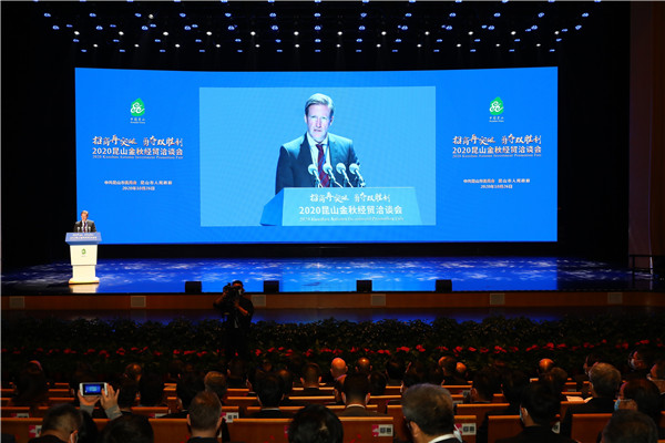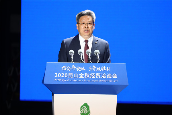 10月26日下午,2020昆山金秋經貿洽談會在昆山文化藝術中心舉行。今年活動期間,簽約項目共71個,投資總額933.58億元,涉及光電、半導體、生物醫藥、高端裝備製造等多個領域,包括總投資200億元的恆力新材料產業園、總投資150億元的清陶固態動力電池等。其中,重大產業項目49個、總部及服務業項目22個。