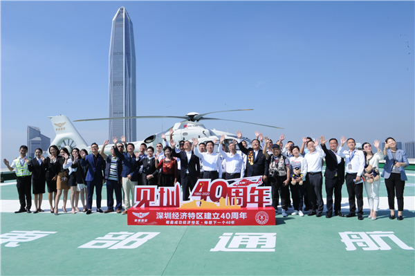10月27日,在大中華國際交易廣場頂樓直升機停機坪舉行了一場別具一格主題為「空中瞰深圳 ·『見圳』特區 40 年」慶祝深圳特區建立40周年的飛行體驗活動,活動邀請了「深圳經濟特區建立40周年創新創業人物和先進模範人物」代表、全國五一勞動獎章獲得者、基層幹部、公交司機、教師、武漢抗疫深圳援鄂醫生、早期港籍到深創業者等等參與體驗。