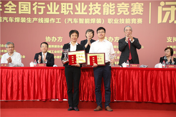 廣汽集團獲得競賽團體優勝獎,並被授予授予本次競賽「突出貢獻獎」,圖左為廣汽集團代表領獎