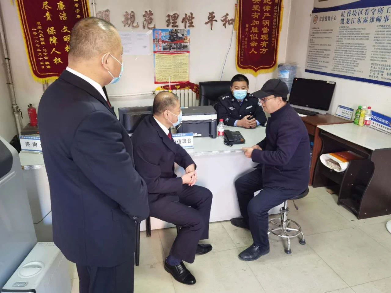 今年新冠肺炎疫情爆發以來,為保證在押人員生命安全,防止疫情在看守所內擴散,香坊區看守所至今一直處於封閉狀態。香坊區檢察院第四檢察部與香坊區看守所結合現有設施條件,開設香坊區看守所律師綠色電話會見專線。辯護律師在提前預約的情況下,每周一到周五可以在香坊區看守所陽光接待大廳辦理會見手續後,通過看守所設置的綠色電話會見專線與所內在押人員取得聯繫,並且專門設置臨時律師會見室,律師會見不被監聽,有效解決律師預約會見難的問題。針對外地律師到看守所會見犯罪嫌疑人或者被告人又沒有提前預約的情況進行特事特辦,在看守所領導審批同意後,當日預約律師會見完的情況下,安排外地律師進行會見,保證每名律師會見權利得到保障。