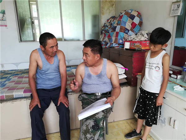 在入戶走訪中發現71歲李長富耳背,老郭幫助李長富辦理了二級殘疾證,2019年7月老人又患了膀胱癌,當老李手術回來後,老郭購買營養品去慰問,他激動得掉下了眼淚。2019年11月,老郭又領李長富老兩口到縣醫院進行免費體檢。12月4日,李長富為工作隊送來一面錦旗,上寫:「關愛百姓辦實事實事求是,扶貧致富新氣象深得民心」。