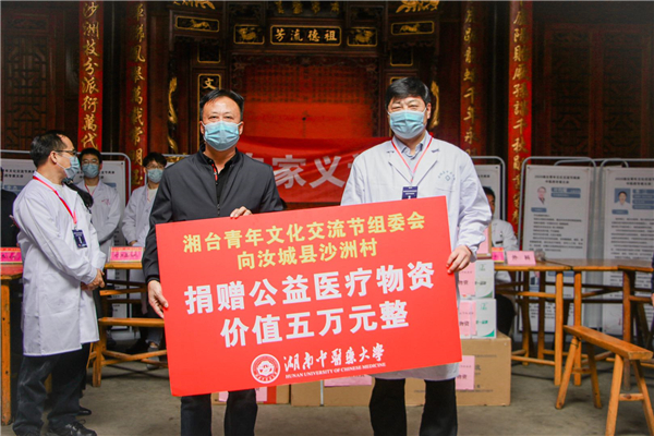 展了包括主題研學、論壇、公益行等多種形式的活動。在郴州期間,2020湘台青年文化交流節組委會還分別向桂陽縣、汝城縣捐贈了500冊中醫藥科普藏書和價值五萬餘元的中醫藥抗疫用品等。