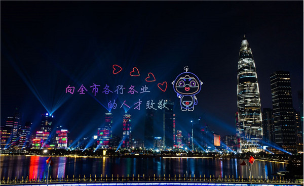 活動當日19時30分,在深圳人才公園的上空,1101架無人機騰空飛躍,上演一幕幕精彩的「南山之夜」。