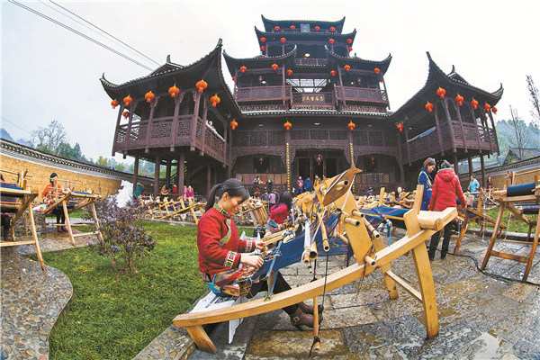民族風情苗兒灘--苗兒灘鎮位於龍山縣南部,少數民族風情濃郁。苗兒灘鎮燦若雲霞的土家織錦,成為中國「四大名錦」之一,湧現出了一批以葉玉翠、劉代娥為代表的土家織錦傳承人,代表作有《椅子花》《張家界》等,其中《椅子花》等5件作品被中央民族民間工藝美術研究所收藏,《張家界》《岳陽樓》等大型壁掛現陳列於人民大會堂,響譽中外。苗兒灘鎮境內旅遊資源豐富,尤以惹巴拉景區著稱。