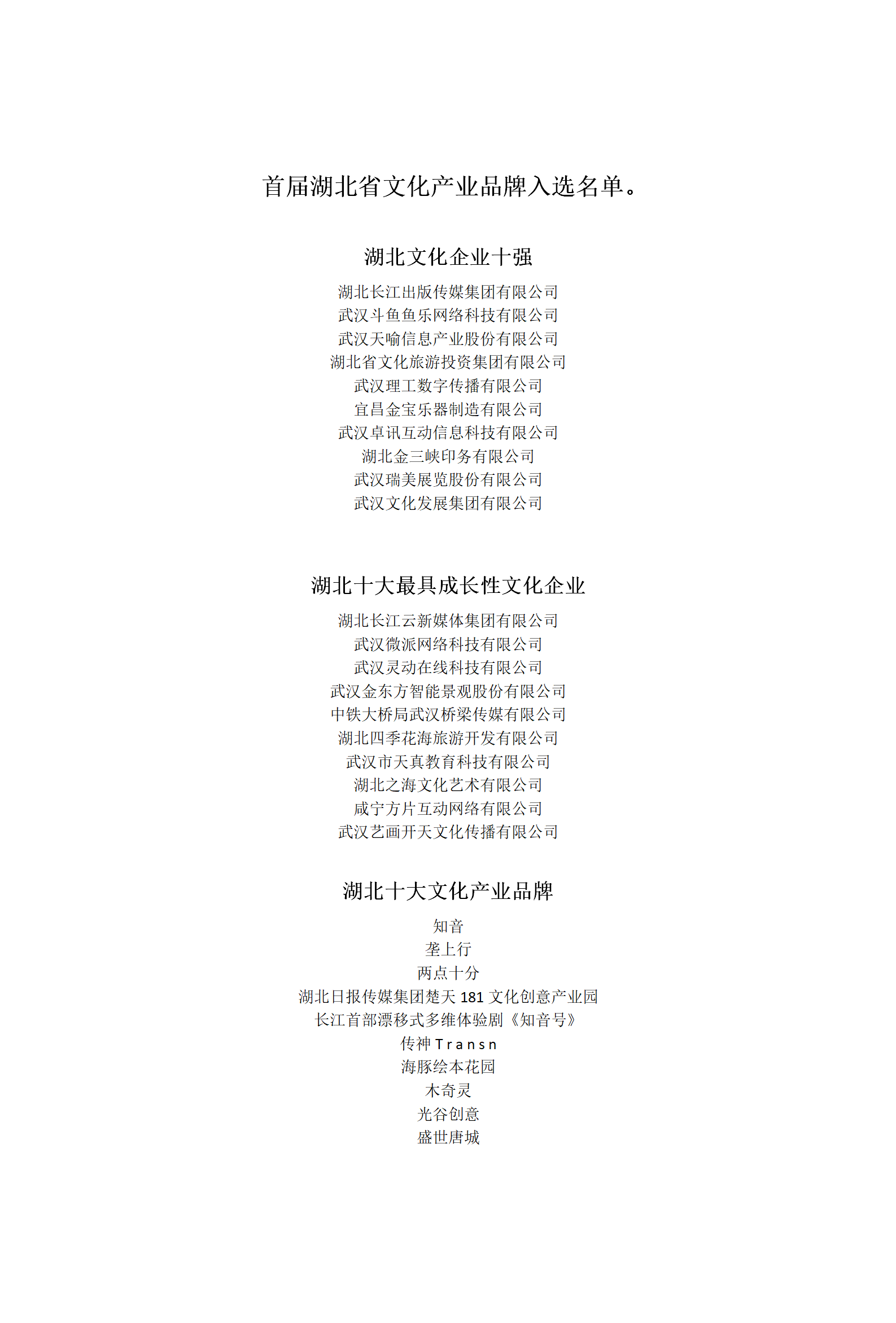 入選「首屆湖北省文化產業品牌選樹活動」企業及品牌名單