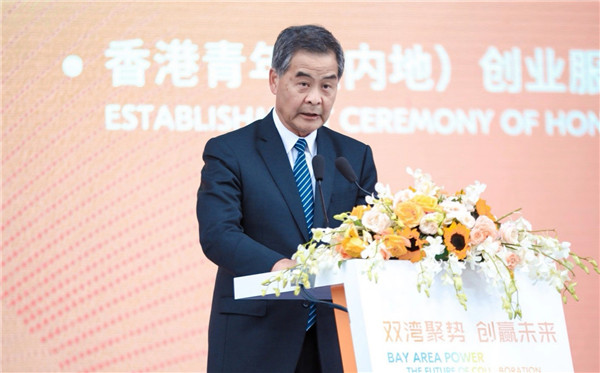 梁振英在致辭中表示,望香港青年人學有所成之後有必要考慮到香港以外的地方發展