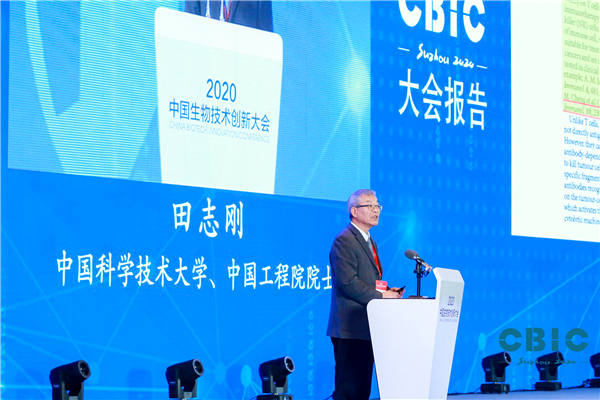 中國科學技術大學教授、中國工程院院士田志剛作了《合成免疫技術與腫瘤免疫治療》的主題分享