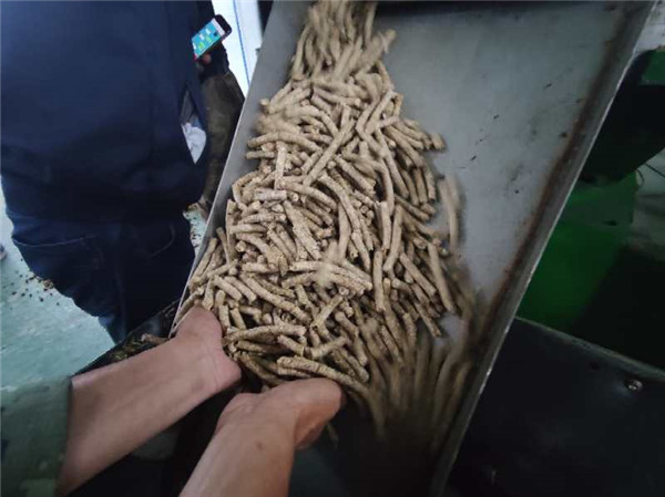 2020年9月7日上午,伴隨着隆隆的機械轟鳴聲,龍江縣山泉鎮平安村扶貧工作隊打造的秸稈綜合利用產業扶貧項目正式開機試生產。這個項目被王新稱作「黃金粒」,它從秸稈和有機廢物綜合利用全產業鏈出發,以「專業合作社+土地託管+秸稈綜合利用產品回收」的模式,實現了多聯產綜合利用,有效解決了秸稈綜合利用問題。項目達產後,可解決平安村周邊7個村、30萬畝耕地的秸稈利用問題,年可生產顆粒燃料1.5萬噸、飼料1.5萬噸、飼草8萬噸。