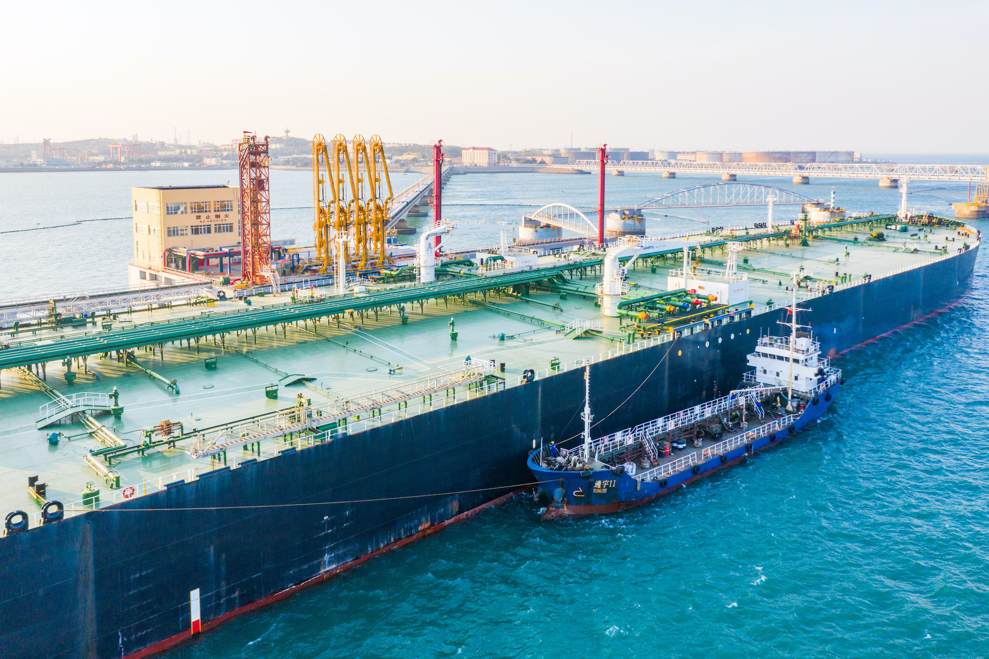 11月4日,「通宇11」輪順利搭靠山東港口青島港實華公司90泊位大型油輪「蘇達班」輪外弦,並為其成功加注船用燃油,標誌着山東港口青島港正式開啟大型油輪在泊船供油業務,開闢了青島口岸為大型油輪開展船供油服務的新通道。