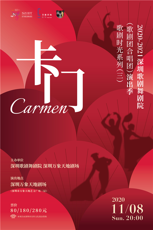 11月7-8日,由深圳歌劇舞劇院主辦,深圳歌劇舞劇院歌劇團、合唱團參演的歌劇時光音樂會《卡門》將在深圳大劇院及萬象天地連演兩場,作為深圳歌劇舞劇院首個2020—2021年(歌劇團合唱團)演出季的主推演出,本次演出選取了西方經典歌劇《卡門》為主題,並特邀中央歌劇院著名青年歌劇導演施晶芙作為本次演出的表演導演。除此之外,廣大觀眾耳熟能詳西方經典歌劇名作《茶花女》、民族歌劇《江姐》也將在本場音樂會呈現。