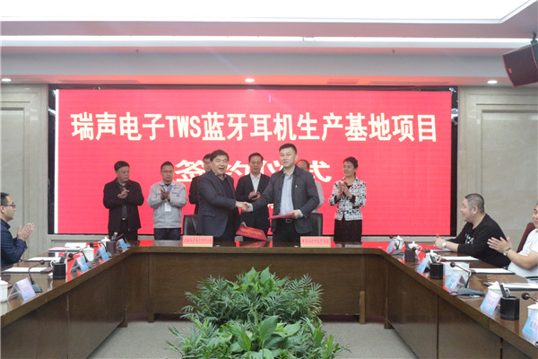 TWS藍牙耳機生產基地項目由江西瑞聲電子有限公司投資建設,項目總投資10億元,主要用於建設廠房、設備升級和新上TWS藍牙耳機生產線,打造無線藍牙耳機生產基地。項目正式投產後,預計第二年新增主營業務收入4億元,新增稅收700萬元以上。(記者 郭美勤 通訊員 康信煜)