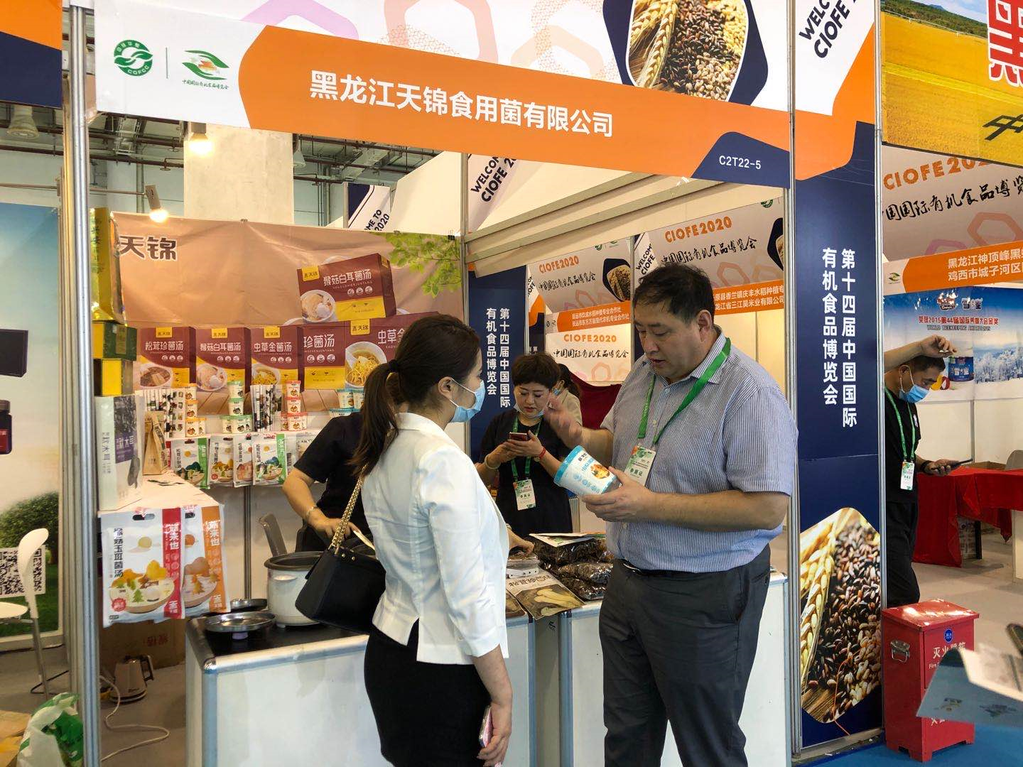 記者來到黑龍江有機食品展區黑龍江天錦食用菌有限公司展位前,參展人員正拿出一袋松茸珍菌湯,邊撕開包裝邊介紹到,「裏面是按比例調配好的,水燒開將每包食材與調料分別放進去,三分鐘就可以品嘗到健康美味的食用菌湯。」記者在與參展人員了解產品時,湯燒得滾熱,隔着口罩,菌類獨有的香氣緩緩鑽進鼻子裏,盛一杯品嘗,菌香四溢繞齒間,不少「聞香」而來的遊客品嘗後立即購買。