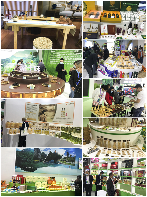 記者在展會現場發現,野生油茶及精深加工的護膚品、竹木工藝品、酸棗糕、茶樹菇、靈芝粉、茶葉及精緻茶具等琳琅滿目的林產品吸引了眾多市民駐足觀看併購買。本屆林博會創新了林產品銷售模式,通過江西林產品在線直播、林產品推介會,讓江西更多的生態林產品從深山老林里走出來,飛入尋常百姓家。