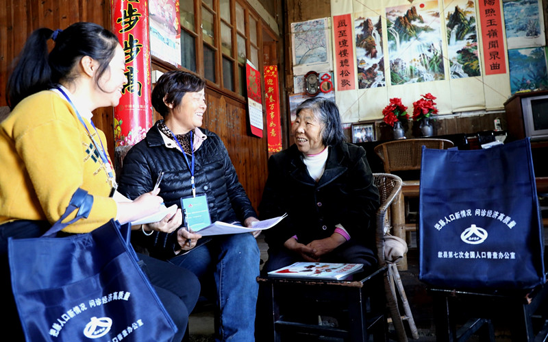 紹濂鄉6個行政村都在深山區,普查員克服山高路遠的困難,入戶採集每個家庭的人口資訊,向村民講解人口普查相關內容。