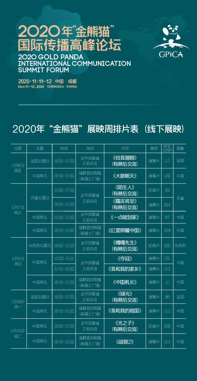 2020金熊貓組委會相關工作人員介紹,此次展映活動,特別精選了來自不同國家的多部優秀影片,希望能為成都的觀眾帶來為期一周的豐富的光影體驗,感受多元的電影文化和藝術。