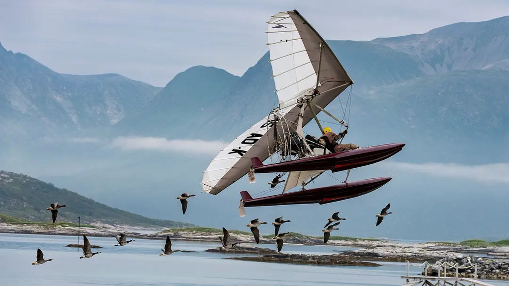片中,托馬斯駕駛着輕航,與一群大雁在藍天下、湖面上共飛的大美畫面,溫情又感人。