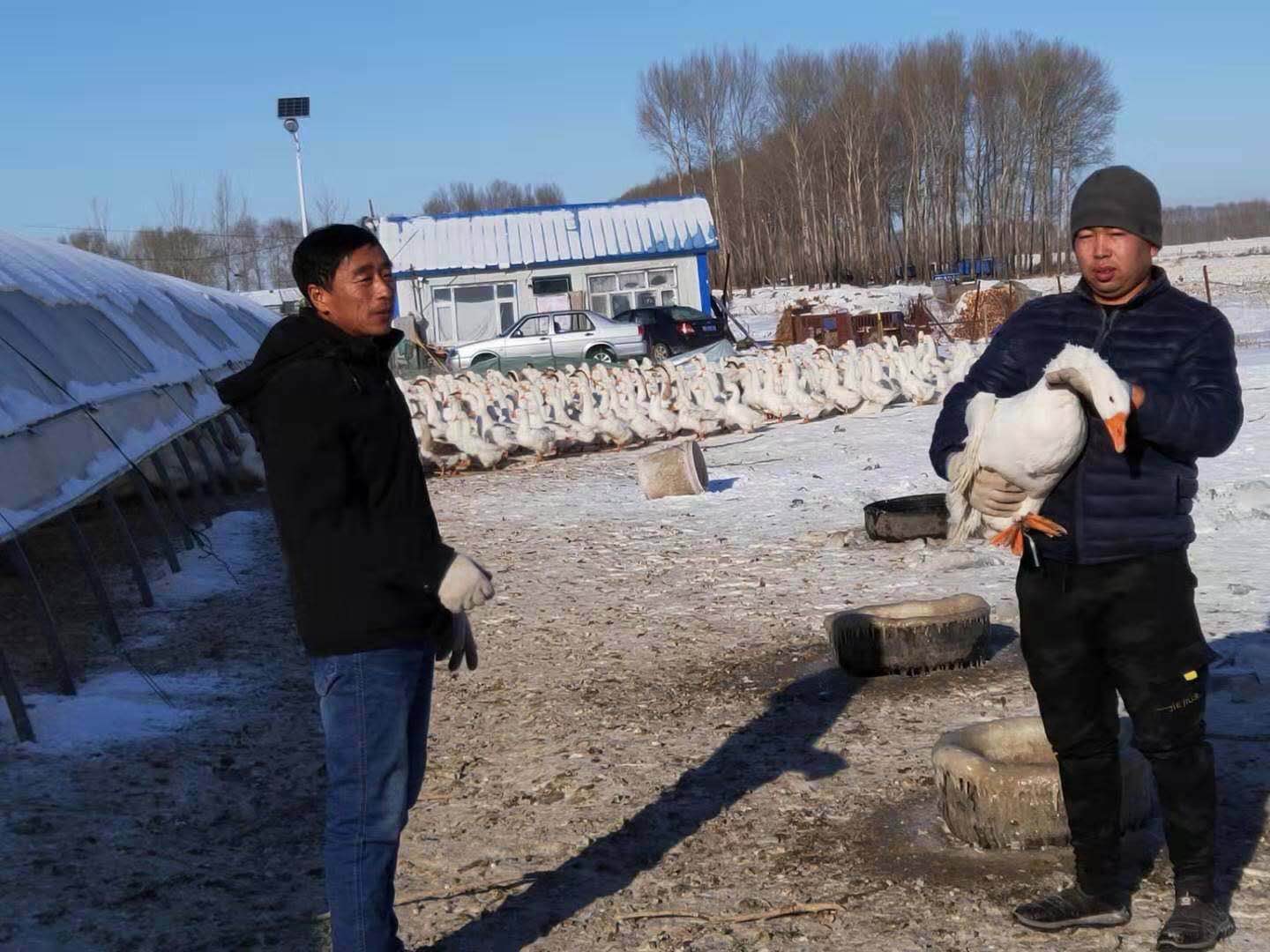 入冬的黑龍江省依安縣,紛飛的雪花鋪蓋在了遼闊的土地上。雪後鵝肥,士琴大鵝養殖專業合作社的又一批大鵝即將出欄。士琴大鵝養殖專業合作社是由中心鎮豐收村的張海峰牽頭成立,到今年已經是第四個年頭,2020年出欄率達一萬隻以上。