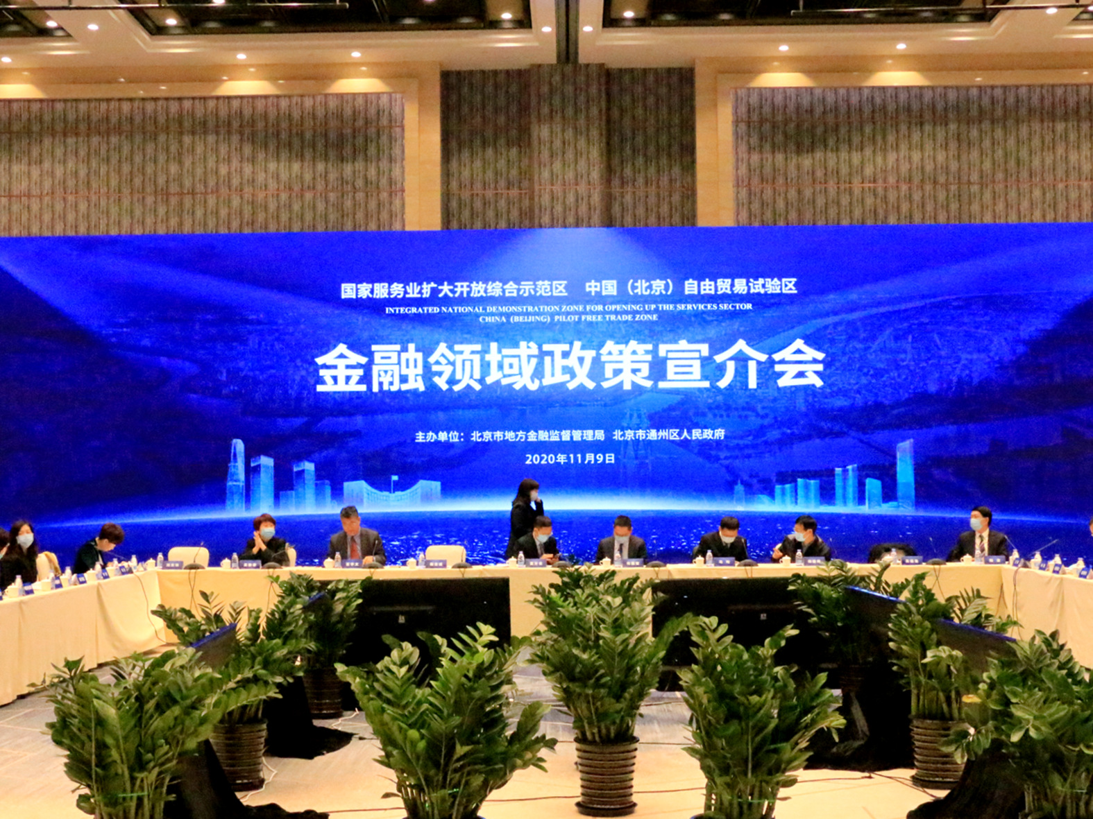 11月9日上午,北京市地方金融監管局和通州區人民政府聯合舉辦國家服務業擴大開放綜合示範區和中國(北京)自由貿易試驗區金融領域專項宣介會。中國人民銀行、銀保監會、證監會、國家外匯管理局相關部門負責人對支持北京「兩區」建設中關於金融領域的相關政策做了解讀。通州區政府介紹了城市副中心利用「兩區」建設機遇發展金融業的思路、舉措。