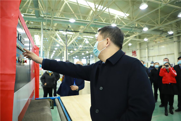 牡丹江市委常委、綏芬河市委書記黃士偉為三個重點項目揭牌剪綵,並按下投產啟動鍵。 杜懷宇 李穎