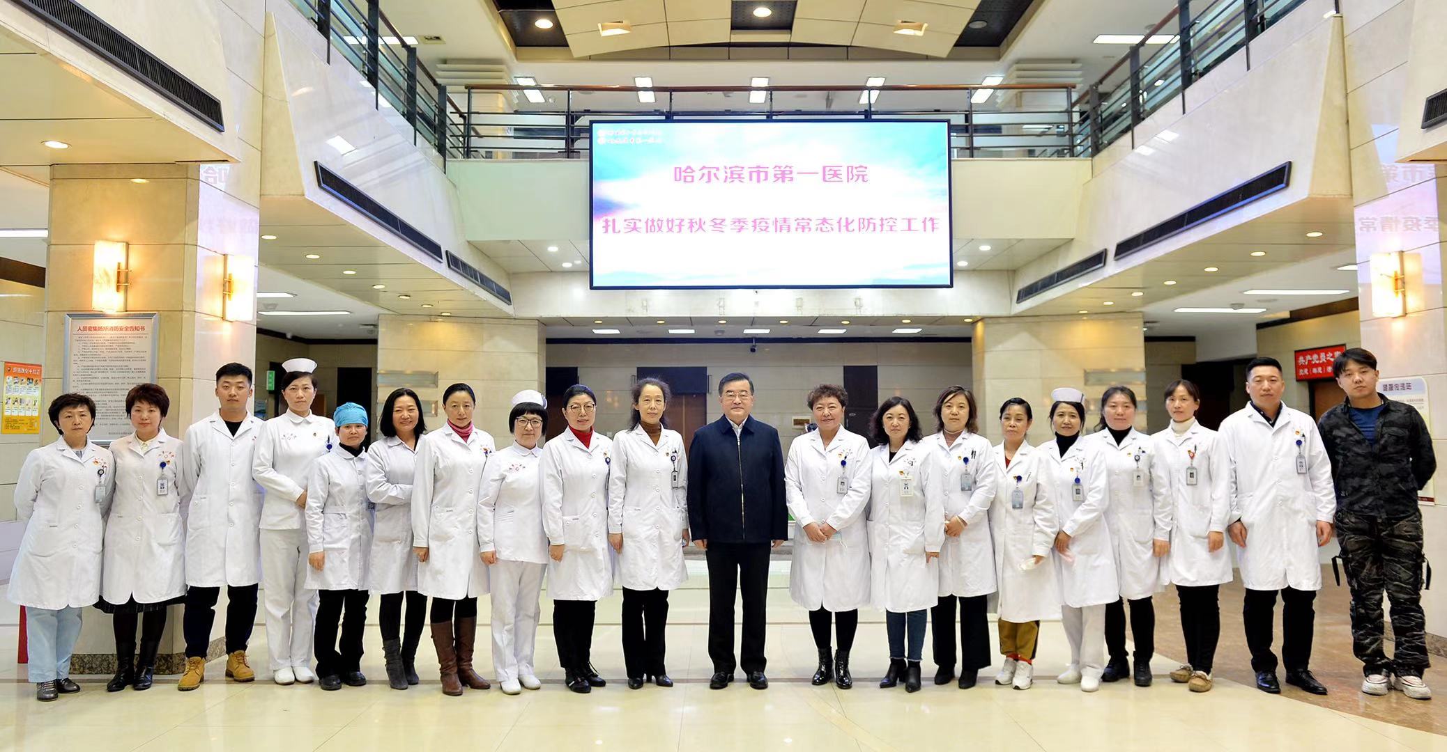 11月5日下午,黑龍江省委書記、省人大常委會主任張慶偉深入哈爾濱市檢查指導今冬明春疫情防控工作,首站來到具有107周年歷史的哈爾濱市第一醫院視察。張慶偉代表省委、省政府向奮戰在疫情防控一線的醫務工作者表示慰問和感謝。黑龍江省委常委、秘書長、辦公廳主任張雨浦、黑龍江省委常委、哈爾濱市委書記王兆力、黑龍江省委常委、宣傳部部長賈玉梅、黑龍江省政府副省長孫東生及有關部門領導參加檢查指導。哈爾濱市第一醫院院長李虹、黨委書記錢朝霞等班子及相關科室人員陪同視察。