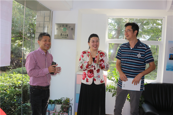 民進中央婦女兒童婦女委員會副主任、中國青愛工程辦公室主任、北京青愛教育基金會理事長張銀俊與中國青愛工程大灣區籌備委員會主要負責人、深圳市鵬星社會工作服務理事長易松國及粵海街道濱海社區黃詠山書記共同為社區青愛小屋示範點揭牌。