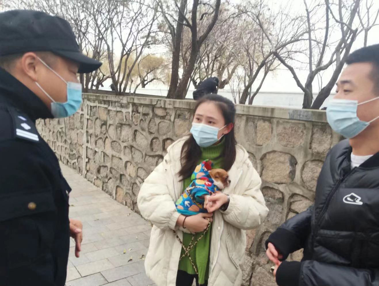 在道外區七道街江邊,一對青年男女將一隻吉娃娃犬放在地上玩,沒有栓犬繩。在確認該犬辦有犬證後,民警對犬主人不栓犬繩、進入禁止溜狗的地方的行為批評教育,並在其犬證上進行了扣分處理。