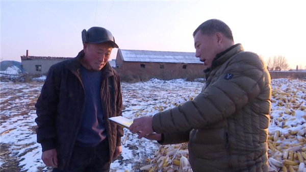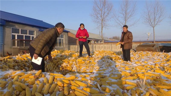 張有軍今年種植了13晌玉米。「由於受到了春低溫、夏伏旱、秋多雨和颱風等自然災害不同程度的影響,造成他家的玉米水分較大。收穫後他將玉米堆在一起很容易發霉變質,必須改變儲存方式。」富裕縣糧食行業協會工作人員來到張有軍家現場指導他科學儲糧。