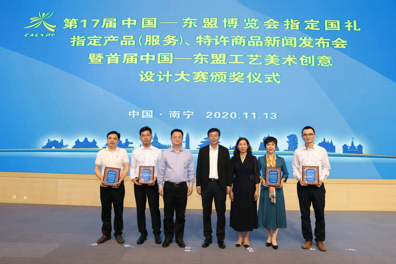 11月13日,第17屆中國—東盟博覽會指定國禮、指定產品(服務)合作夥伴、特許商品新聞發佈會暨首屆中國—東盟工藝美術創意設計大賽頒獎儀式在廣西南寧舉行。12家企業牽手東博會,榮膺第17屆東博會指定國禮、指定產品及服務合作夥伴稱號, 13家企業產品成為東博會特許商品,4位工藝美術大師代表作品獲得東博會國賓紀念品、貴賓紀念品獎項。發佈會上,中國—東盟博覽會秘書處王雷秘書長及胡志崇副秘書長分別為國禮合作夥伴、指定產品及服務合作夥伴、特許商品企業代表頒發了榮譽牌匾。