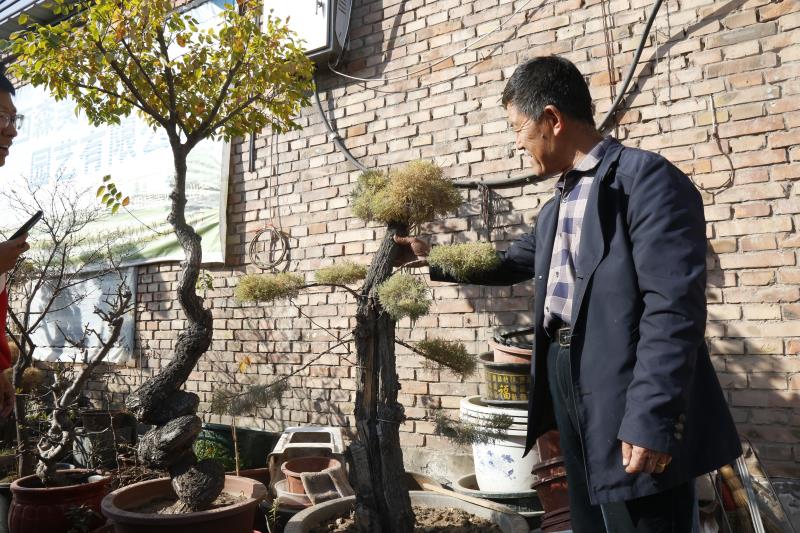 北方盆景講究“古根透秀”。古,顯得老,有年頭,古木逢春;根,提根露爪,還要紮根泥土;透,透過根系可以看到盆景後面的景色;秀,整體盆景還要秀氣。“培養前腦海中就要有盆景最終的樣子,根據植物的生長條件,挑選有觀賞價值、藝術價值的植物,作為盆景植物選擇的參考,經過不斷的人工干預,得到令自己滿意的盆景。”聽起來似乎輕描淡寫,但這背後沉澱了他40餘年的園藝經驗積累。
